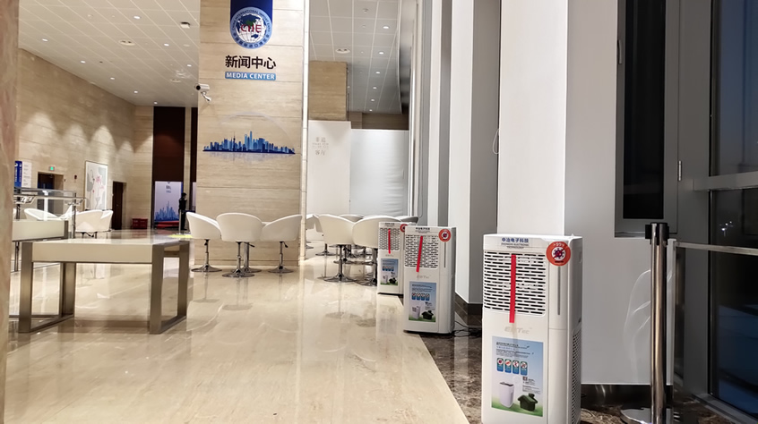 純物理方法殺滅新冠病毒的空氣凈化器在國家會展中心(上海)第三屆進(jìn)博會10000平方新聞中心安裝完畢,以及新聞中心全體工作人員人手一份的殺滅新冠易呼吸口罩伴侶已送到指定地點,寧波中冶電子科技公司為進(jìn)博會新聞中心安全防疫保駕護(hù)航!